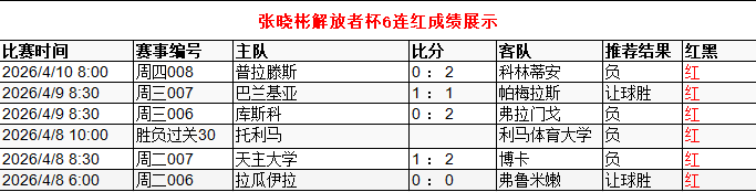 张晓彬解放者杯6连红