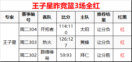 昨竞篮3场全红