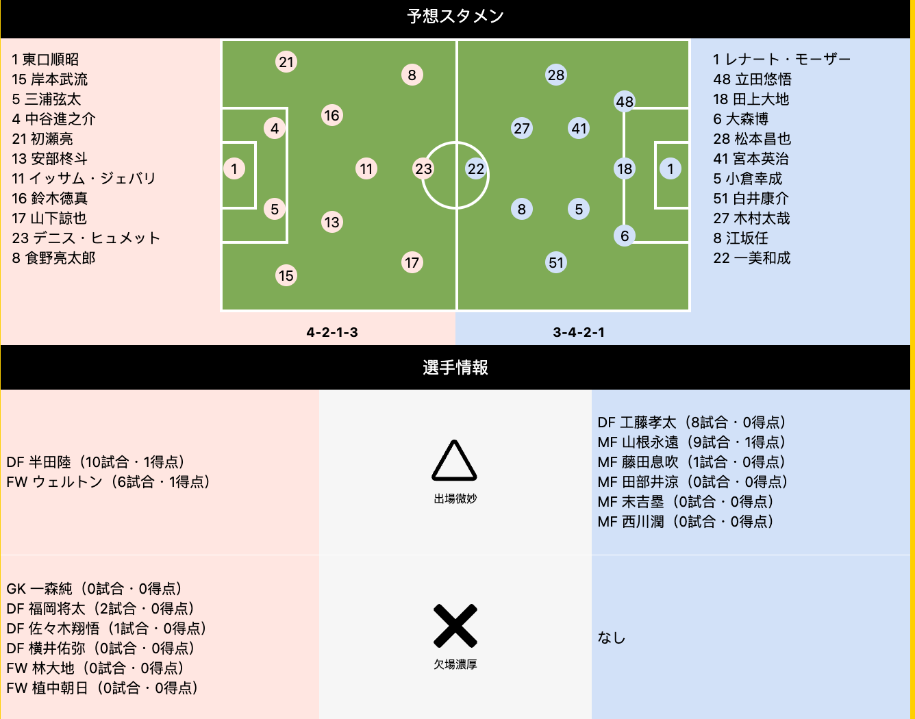 冈山绿雉实力定位肯定是不高,最近成绩确实是比较差,上场比赛更是大比分地输给京都不死鸟,之前也是大比分输给了神户,两场比赛丢了9个球。不过球队这个赛季的客场成绩其实还可以,主打一个防守反击,人员上来看也没有任何主力伤停的困扰,这是球队的优势。