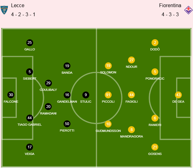 莱切(433) Ferreira; Travassos, Batista, Monteiro, Kiko; John, Stepanovic, Alanzinho; Bondoso, Semedo, Landerson