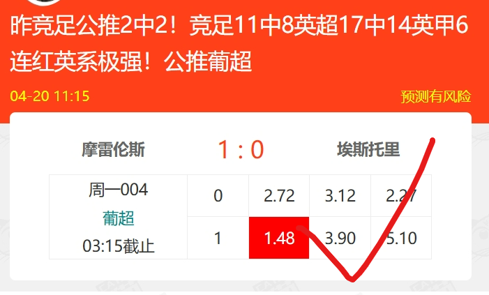 目前状态不错,竞彩10中8、竞足3连红9中7、北单10中8.赛事方面,英甲6连红22中17,亚冠9中7,韩职11中8,丹麦甲8中7、墨超10中8!东亚足球极强,三场韩职都是临场发出,多关注!