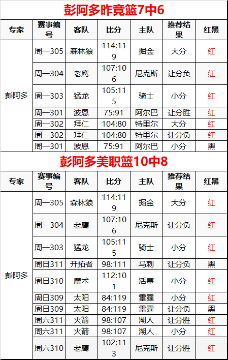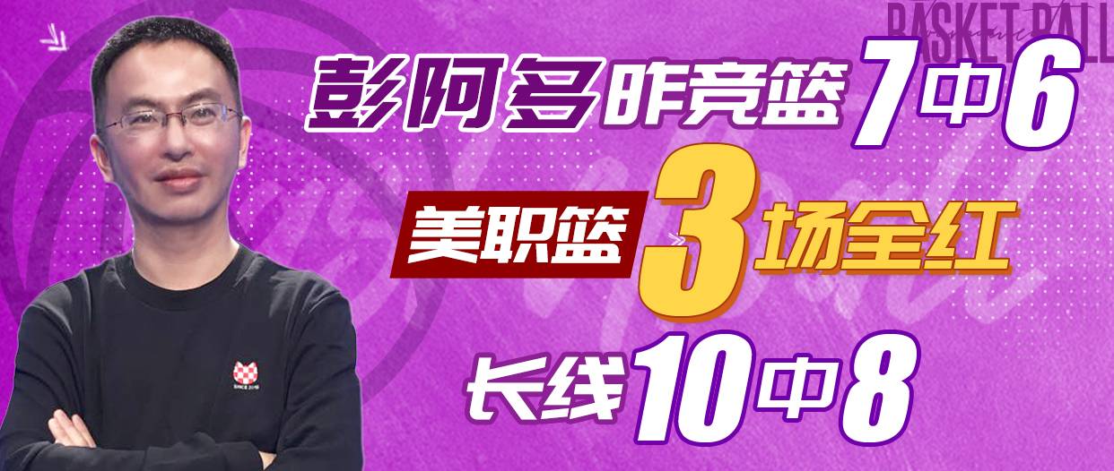 彭阿多昨竞篮7中6 美职篮3场全红长线10中8